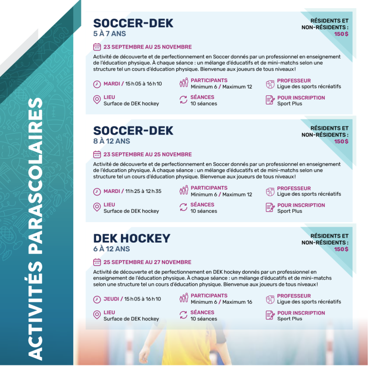 Cours de Tennis/soccer/Dek – Parascolaire & plage hors école